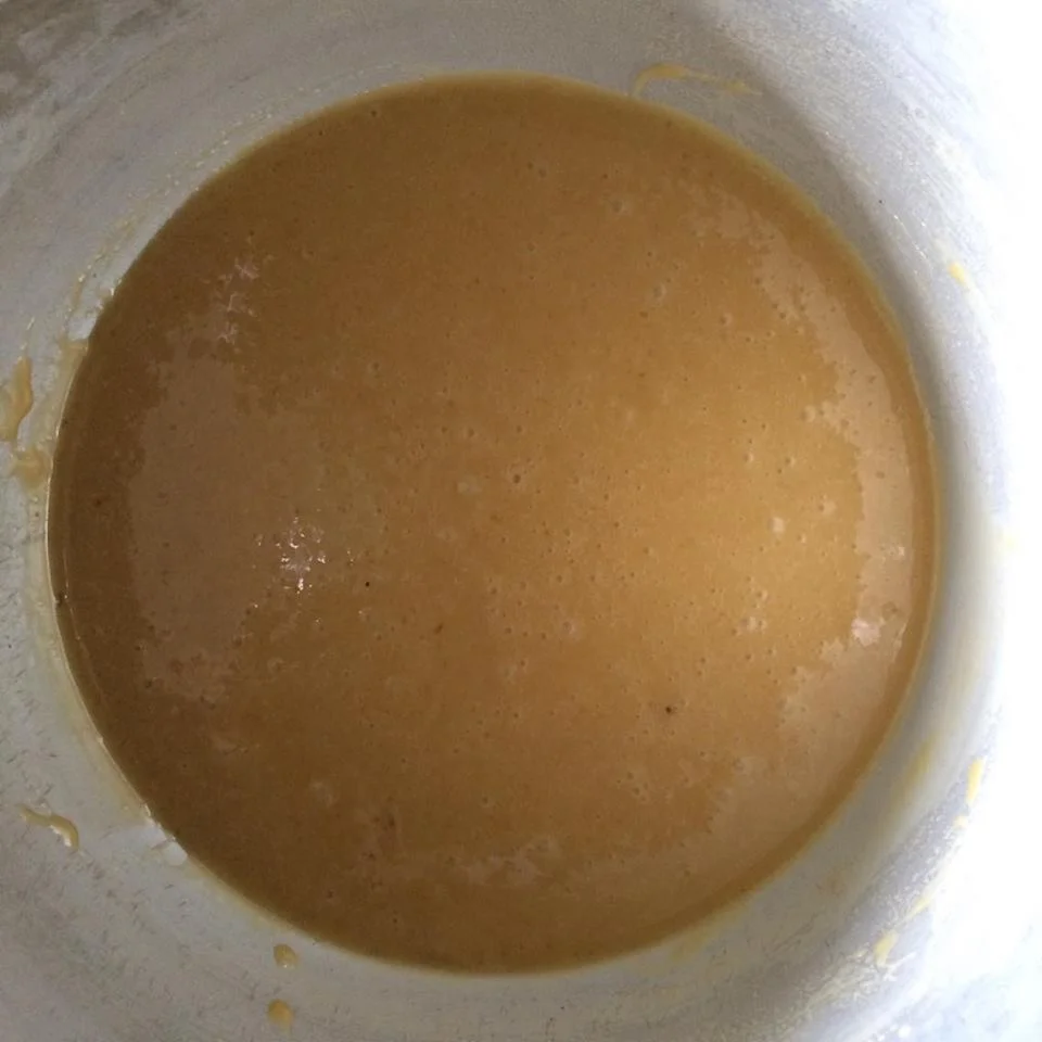 2. While the mixture is heating, pre heat the oven to 180C/350F/Gas Mark 4. Heat the ingredients slowly and gently over a heat to dissolve the sugar and to prevent the mixture from crystallising. This will make around 15 minutes. To check to see if the mixture is ready to pull a spoon across the bottom of the pan, pull a spoon across the bottom of the pan if there no gritty feeling (from the sugar granules) then the mixture is ready.
