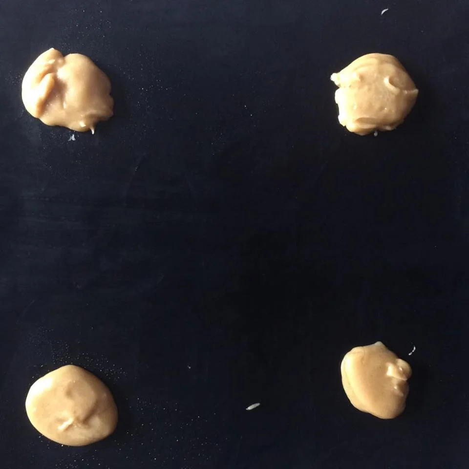 4. Line a baking tray with greaseproof paper. Place 4 teaspoons of the mixture onto the baking tray.