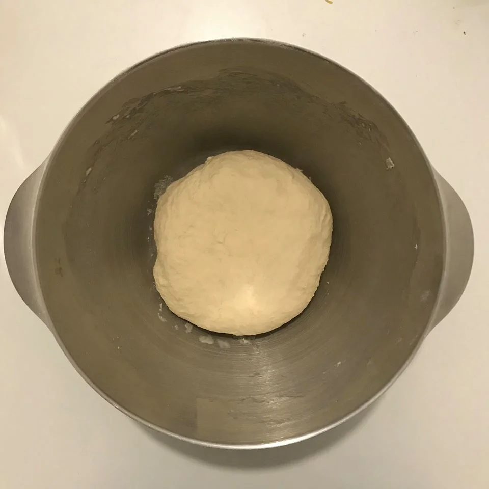 2. Add the olive oil and add 3/4 of the water into the bowl and mix using a stand mixer with a dough hook attachment, at a low speed. Once a dough starts to form add the rest of the water. Mix for 8 minutes or until the dough becomes elastic and stretches away from the bowl.